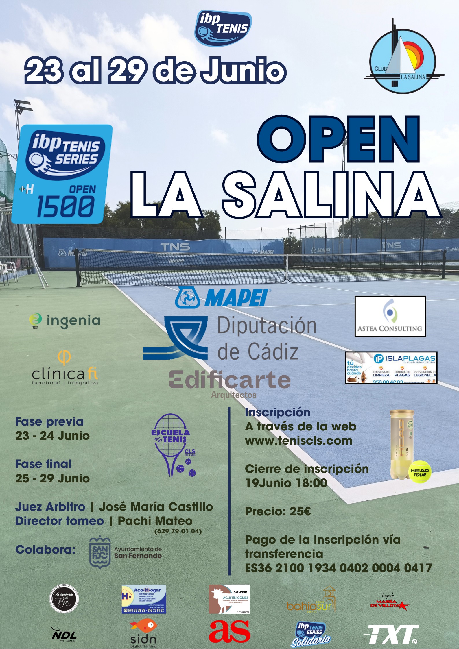 Con 50 jugadores entre cuadro final y fase previa, el nuevo torneo del IBP Tenis Pro arranca con un cuadro competitivo y gran participación El Open La Salina, que se disputará del 23 al 29 de junio en el Club La Salina de San Fernando (Cádiz), ha publicado su listado oficial de inscritos. El torneo, […]