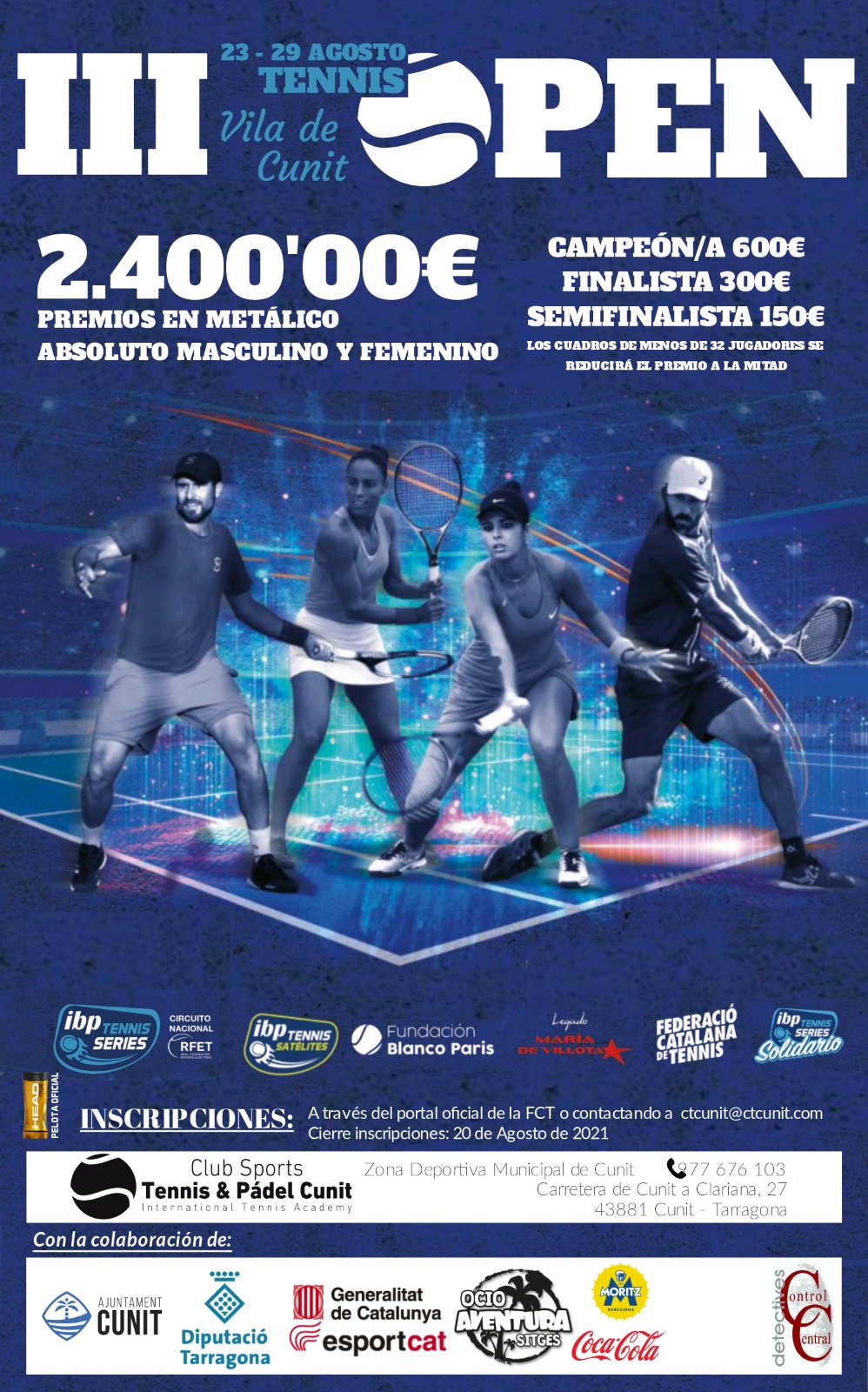 Del 4 al 10 de agosto, el Club Tenis Cunit acoge una nueva edición de uno de los torneos más consolidados del Circuito IBP Tenis Pro El VII Open Vila de Cunit se celebrará del 4 al 10 de agosto en las instalaciones del Club Tenis Cunit (Tarragona). El torneo, de categoría Open 500, forma […]