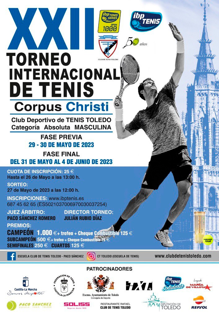 El Circuito IBP Tenis PRO hace parada en Toledo con motivo del XXIV Torneo Internacional de Tenis Corpus Christi, que se celebrará del 19 al 25 de mayo de 2025 en las pistas municipales del Club Deportivo de Tenis Toledo, organizadas por la Escuela Paco Sánchez. Este tradicional torneo, ya consolidado en el calendario nacional, […]