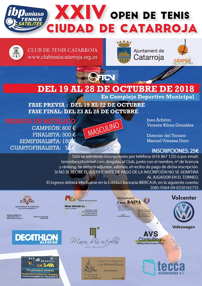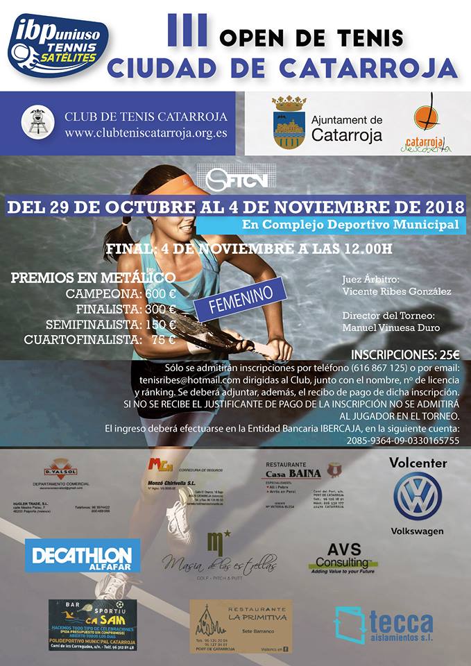 Ya se han disputado cuarenta y una pruebas. Y el Circuito IBP Uniuso Satélite del 2018 tendrá su última cita en la Comunidad Valenciana, con la disputa a finales de octubre del XXIV Open Masculino y el III Open Femenino Ciudad de Catarroja, organizado por el Club de Tenis Catarroja.