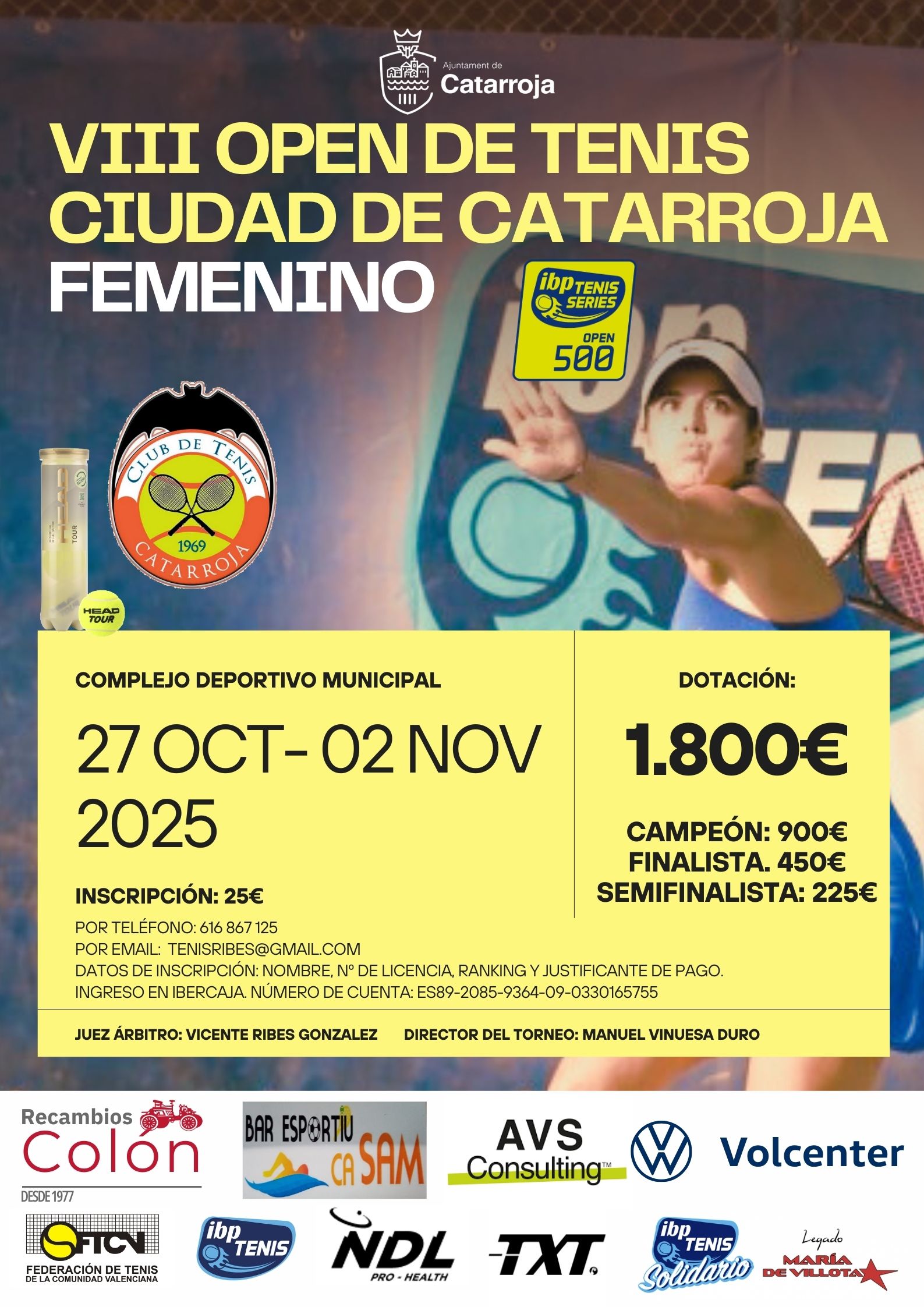 Email: tenisribes@gmail.es; clubdeteniscatarroja@gmail.es